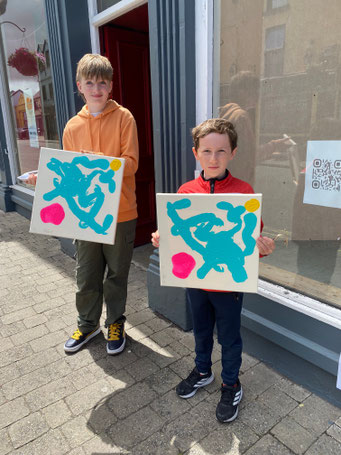 ME: For the insurance, I had to specify a number. I assumed 100 visitors per day. I had placed posters and flyers in 50 locations in Killorglin, Glenbeigh, Cahersiveen, Milltown, Tralee, and Killarney. There was also an announcement on Kerry Radio about the weekend events. It was very pleasing that there were over 300 visitors on those two days. Fortunately, not all visitors came at once, but spread out, so everyone had the opportunity to talk with me. Everyone from the K-Fest was there, and artists like Rachel Varden drove over three hours from Galway to be there. But I also met many new people, especially I was happy about the high number of young visitors, many of whom also bought my art.