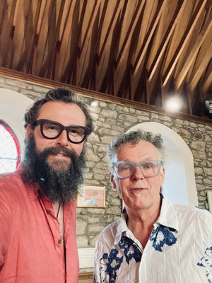 "Die Gruppenausstellung in der entweihten Belfry Kirche in Glenbeigh, erfolgte nur eine Woche nach meiner Einzelausstellung. Die Präsentation war, wie man bei uns sagt, mit heißer Nadel gestrickt. Dennoch konnten wir einige sehr gute Arbeiten lokaler Künstler in diesem besonderen Raum zusammentragen. Zum Glück hatte ich meine Skulptur "Cromane" in Glenbeigh. Diese hatte ich ich ein Jahr zuvor auf dem K-Fest zum ersten Mal gezeigt. Es handelt sich um ineinandergesteckte Muscheln der benachbarten Cromane Beach. Selbstbewusst auf die ehemalige Kanzel gesetzt, war das Interesse zu dieser lokal bezogenen Arbeit wieder sehr groß. Dazu habe ich ein farbintensives Graffiti der Rossbeigh Beach, das auf 24 Stück limitiert ist, gesetzt. Und das aus der Skizze entstandene Mosaik, welches in dezenteren Metallicfarben umgesetzt ist. Der berühmte Krimi-Autor William Shaw war mein erster Kunde auf dieser Ausstellung." Markus Ehrhard